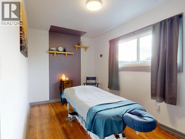 Beautifully renovated commercial opportunity in a prime central location! Extensively updated in 2022, this charming character building blends the warmth of a home with flexible C2 zoning for a wide range of business uses. Interior upgrades include restored original flooring, new paint, updated electrical and blown-in attic insulation. The exterior features a new roof, windows and siding. The layout offers three treatment rooms, welcoming reception with 2-piece bath, staff room with second 2-piece bath, and a small rear porch. The unfinished basement includes a sound-proofed laundry area and secure storage. Modern HVAC system (2022) serviced annually. Previously home to a thriving wellness centre. Ample on-site parking and excellent visibility make this a rare turnkey commercial offering in Powell River. (id:25560)