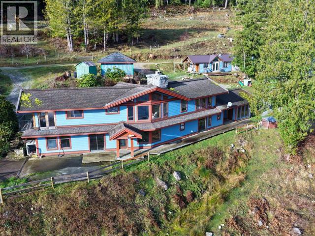 7.56-acre oceanfront property in Okeover Inlet with a main residence, guest house, and specific permission for private moorage allowing a 40 ft dock. The land is fully cleared and fenced, providing privacy and good sunlight, and is suitable for a hobby farm. Easy access to the dock location and a natural boat launch. The dock site offers protected, deep-water moorage. The main home features 5 bedrooms and 4 bathrooms, including two bedrooms on the main floor. The living room has vaulted ceilings, a stone fireplace, and ocean and mountain views. The primary bedroom is spacious and view-facing. The lower level includes two additional bedrooms and a bathroom, plus a separate-entry bedroom and bathroom, providing flexible accommodation. A second, well-finished smaller home offers guest or rental potential. Additional improvements include a shop and outbuildings. Numerous upgrades have been completed. Ideal full time residence or retreat property. (id:25560)